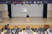 [ 중앙뉴스미디어 ] 청주시는 31일 문화제조창 5층 한국공예관 공연장에서 ‘2025년 종무식’을 개최했다. 행사에는 이범석 청주시장을 비롯한 시 공직자 300여명이 참석했다. 종무식은 한 해 시정성과를 공유하고 유공 공무원과 부서를 격려하며 2025년을 뜻깊게 마무리하는 자리로 마련됐으며 국민의례, 2025년 주요 성과를 담은 영상 상영, 유공자 표창 수여, 시장 송년사 순으로 진행됐다. 특히 이날 표창 수여식에서는 국무총리, 경제부총리, 국가데이터처장, 행정안전부장관, 충청북도지사 표창을 비롯해 시정 유공 공무원, 모범공무원, 우수부서, 친절공무원 등 총 59명(개인·부서)이 수상의 영예를 안았다. 수상자들은 제안 활성화, 통계 업무 진흥, 재난관리, 에너지·주택행정, 지역경제 활성화, 시정 홍보, 복지·환경·보건 등 다양한 분야에서 시정 발전에 기여한 공로를 인정받았다. 한편 이범석 시장은 종무식 참석에 앞서 본청 소속 51개 부서를 순회하면서 직원들과 일일이 악수를 나누며 한해의 노고를 격려했다. 이범석 청주시장은 송년사에서 “2025년은 많은 도전과 변화 속에서도 시민과 공직자