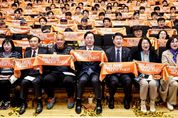 [ 중앙뉴스미디어 ] 화성특례시의회는 21일, 수원대학교 음악대학 콘서트홀에서 개최된 2026시즌 화성FC K리그2 출정식에 참석해 출정을 축하하고 구단 선수단을 격려했다. 이날 출정식에는 화성특례시의회 배정수 의장과 장철규 기획행정위원장, 김종복 문화복지위원장, 명미정·배현경·송선영·이해남·조오순 의원이 참석했으며, 구단주(화성특례시장)를 비롯해 선수단, 시민(팬) 등 7백여 명이 함께했다. 배정수 의장은 “화성FC의 새로운 여정을 알리는 '2026시즌 출정식’의 열기가 정말 뜨겁다”라며 “지난 2025년 우리도 할 수 있다는 가능성을 온몸으로 증명했다”라고 전했다. 배 의장은 이어“여러분의 유니폼은 106만 화성시민의 자부심이니 매 경기 후회 없는 투혼을 발휘해달라”라고 전했다. 한편, 이날 행사에서 화성FC는 '1부리그 승격’이라는 목표를 제시했으며, 팬들이 뽑은 2025시즌 MVP에는 김승건 선수가, BEST골 부분에서는 우제욱 선수가 선정되며 지난 시즌의 공로를 인정받았다.