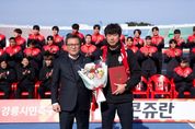 [ 중앙뉴스미디어 ] FC강릉(재단법인 강릉시민축구단)은 2026시즌을 앞두고 직무대행 체제였던 감독직위에 임다한 감독을 임명하여, 새 시즌을 향한 팀 운영 체제를 완성했다. 구단은 2026년 1월 30일, 임다한 감독 임명식을 개최했다. 이날 FC강릉 이사장인 김홍규 강릉시장이 직접 임명장을 수여하며, 감독 직무대행 체제로 운영되던 팀이 정식 감독 체제로 전환했음을 대외적으로 분명히 했다. 임다한 감독의 선임을 계기로 FC강릉은 2026시즌을 향한 지휘 체계를 명확히 정립하고, 전지훈련을 포함한 시즌 준비에 속도감 있게 돌입할 계획이다. 임명식 직후에는 2026시즌을 대비해 구성이 완료된 선수단(40명: 코치8, 선수단32)의 첫 공식 행사로 단체사진 촬영이 이어졌다. 이번 행사는 완성된 선수단의 현재 모습을 대중에게 처음 선보이는 자리로, 2026시즌 FC강릉의 출발을 상징하는 장면이 될 전망이다. 또한 김홍규 이사장은 전지훈련을 앞둔 선수단에게 격려와 응원의 메시지를 전하며 선전을 당부했고, 선수단 역시 새 시즌을 향한 각오와 결의를 다지는 시간을 가졌다. FC강릉 최윤순 단장은
