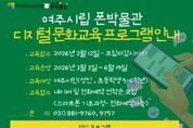 [ 중앙뉴스미디어 ] 여주세종문화관광재단 여주시립 폰박물관은 2026년 상반기 디지털 역량 강화를 위한 '디지털문화교육프로그램'수강생을 모집한다. 이번 교육은 급변하는 디지털 환경 속에서 시민들이 일상에서 활용 가능한 실질적인 디지털 기술을 익히고, 창의적 콘텐츠제작 능력을 기를 수 있도록 기획됐다. AI활용부터 스마트폰 기초, 사진, 디지털 디자인, 캘리그라피까지 폭넓은 주제로 구성해 세대별 맞춤 교육을 제공한다. 교육 운영 기간은 2026년 3월 3일부터 6월 19일 까지이며, 수강신청은 2월 12일부터 선착순으로 접수한다. 여주시민을 대상으로 하며 성인과 초등학교 5-6학년 과정으로 나누어 운영된다. ■ 성인 대상 프로그램 (총 14회 과정) ▶ AI 숏폼 제작하기 AI 기초 이해부터 숏폼 콘텐츠 제작 실습까지 진행한다. (3.10.~6.16. 매주 화 13:00~15:00) ▶ 스마트폰 사진교실 – 손안의 기록 스마트폰을 활용한 촬영 기법과 감성 사진 표현을 배운다. (3.10.~6.16. 매주 화 15:30~17:30) ▶ 나만의 디지털 디자인 스토리 with 캔바 캔바를 활용한 디지털 디자인 제작