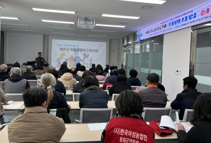 [ 중앙뉴스미디어 ] 봉화군 농촌활성화센터는 2026년 1월 27일 오후 2시, 봉화군 미래농업교육관 2층 세미나실에서 [2026년 봉화군 마을공동체 지원사업] 설명회를 개최했다.