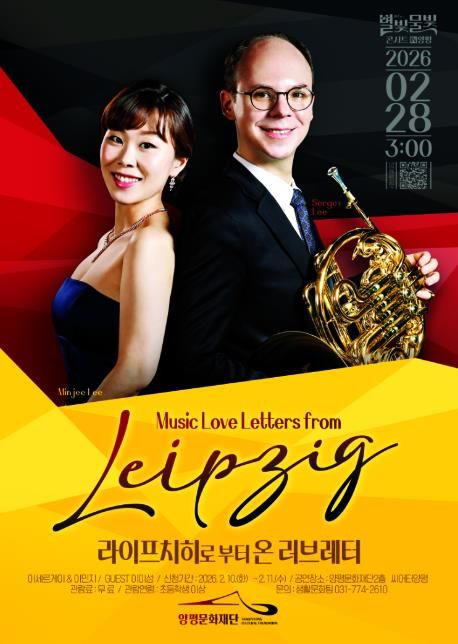 [ 중앙뉴스미디어 ] 양평문화재단은 오는 28일 오후 3시, 양평문화재단 2층 시어터양평에서 ‘별빛물빛 콘서트 in 양평’ 2월 정기공연으로 클래식 공연 《라이프치히로부터 온 러브레터(Music Love Letters from Leipzig)》를 선보인다.