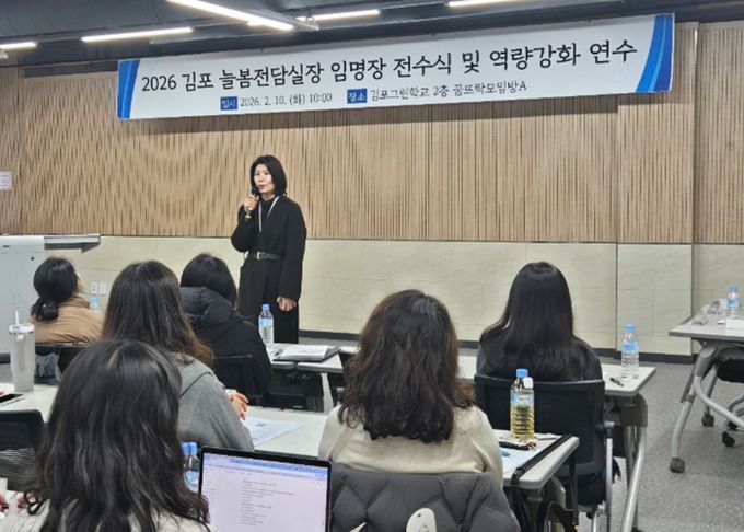 [ 중앙뉴스미디어 ] 경기도김포교육지원청은 2월 10일 2026 늘봄전담실장 25명을 대상으로 임명장 전수식과 함께 초등 방과후·돌봄 교육 운영의 전문성 및 현장 대응 역량 강화를 위한 ‘2026 늘봄전담실장 역량강화 연수’를 실시했다.