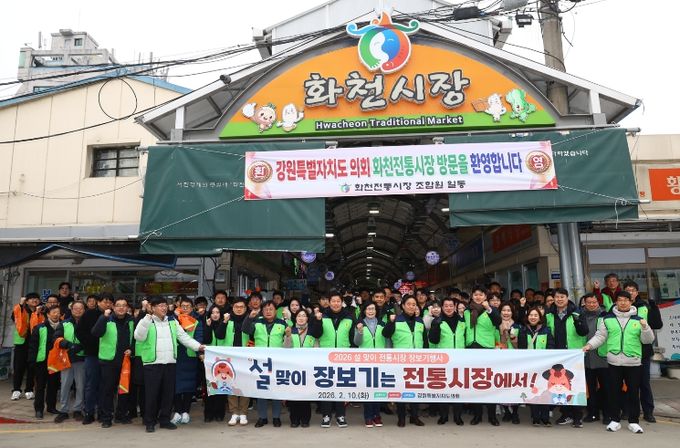 [ 중앙뉴스미디어 ] 강원특별자치도의회는 2월 10일, 설 명절을 앞두고 화천시장을 방문해‘전통시장 장보기 행사’를 가졌다.