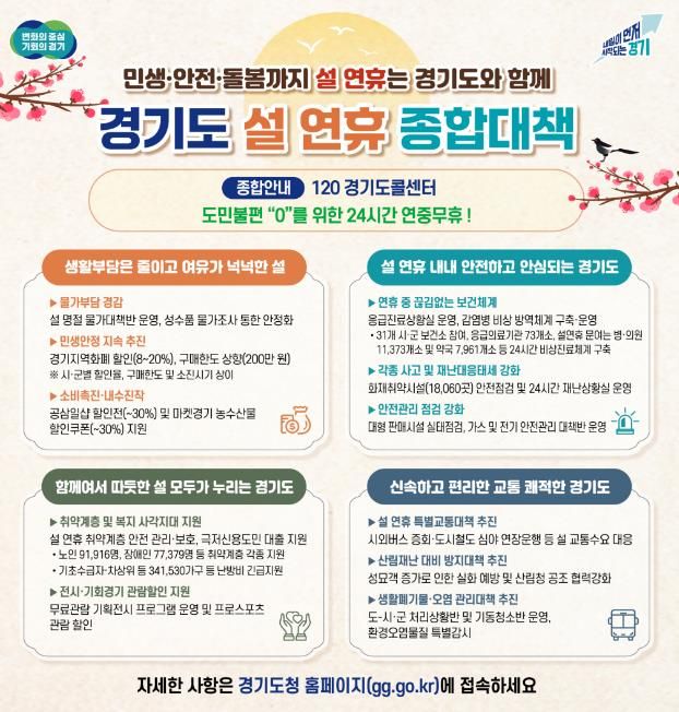 [ 중앙뉴스미디어 ] 경기도가 도민들이 따뜻하고 편안한 명절을 보낼 수 있도록 ‘설 연휴 종합대책’을 추진한다.