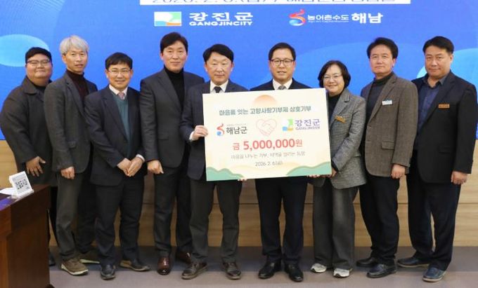 김준철 강진부군수는 “상호기부에 동참해 주신 강진군과 해남군청 직원 여러분께 감사드린다”며 “이번 상호기부가 고향사랑기부제에 대한 공감대 형성과 실천 확산에 의미 있는 계기가 되길 바란다”고 말했다.