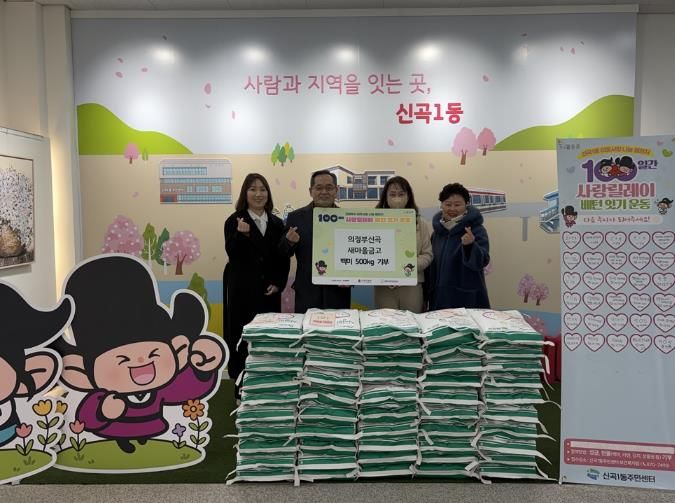 [ 중앙뉴스미디어 ] 의정부시 신곡1동주민센터는 2월 9일 의정부신곡새마을금고가 어려운 이웃을 위해 백미(10kg 단위) 50포를 기부했다고 밝혔다.