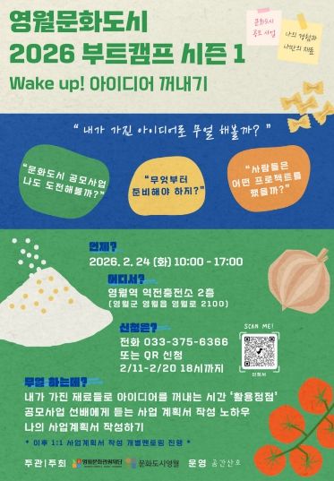 [ 중앙뉴스미디어 ] (재)영월문화관광재단 문화도시센터는 오는 2월 24일 영월역 문화충전소에서 지역민의 창의적인 로컬 아이디어를 발굴하고 실질적인 사업계획서로 발전시키기 위한 ‘영월 로컬 아이디어 구체화 부트캠프 시즌 1’을 개최한다.
