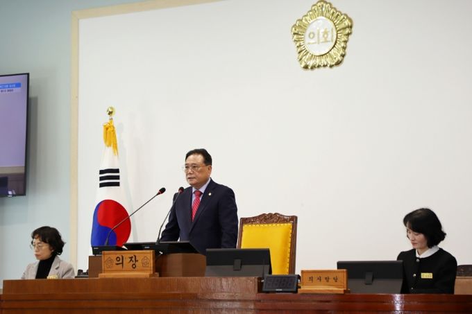 이만호 의장은 개회사를 통해 “최근 중동 지역의 긴장 고조로 국제 유가 상승과 공급망 불안이 우려되는 만큼, 집행부에서는 지역경제와 군민 생활에 미치는 영향을 면밀히 분석하고 민생 안정 대책을 신속히 추진해 군민들의 부담을 최소화해야 한다.”고 강조했다.