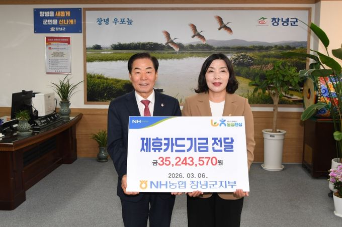 군은 6일, NH농협은행 창녕군지부(지부장 유동경)와 함께 ‘제휴카드 적립기금 전달식’을 가졌다.