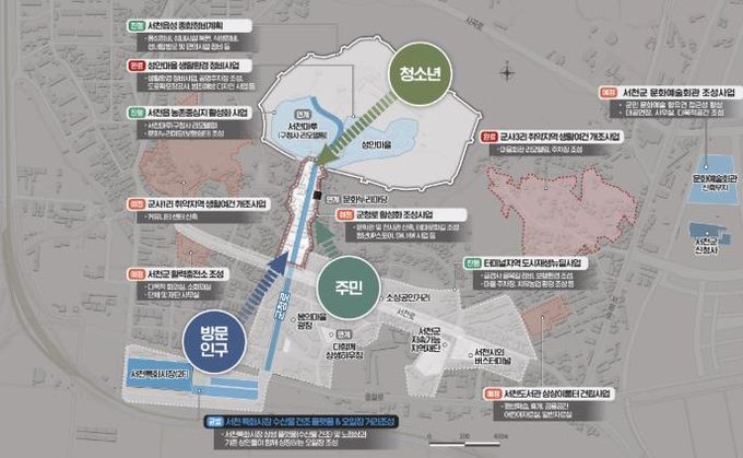 주요 내용으로는 ▲서천 문학관 및 전시관 신축 ▲테마문화길 조성 및 문화길잡이 양성 ▲청년 UP스토어 조성 및 상권 기획자 육성 등 하드웨어와 소프트웨어가 결합된 다각적인 활성화 사업이 포함되어 있다.