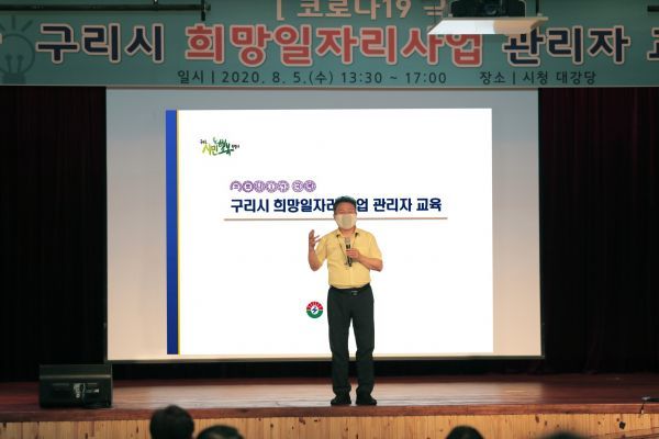 안승남 시장은 사업장 및 참여자 관리 교육에 직접 참여해 “이번 코로나19 극복 희망일자리 사업에 1,500명의 대규모 인원이 참여한 만큼, 각 사업장 별 세심한 관리가 필요하다”며 “그동안 직원 인력만으로 어려웠던 다중이용시설, 학교 등 코로나19 생활방역과 다양한 공공부문에서 참여자들과 잘 협력해 더욱 적극적이고 깊이 있게 본연의 업무를 추진해 주기를 바란다”고 당부했다.
