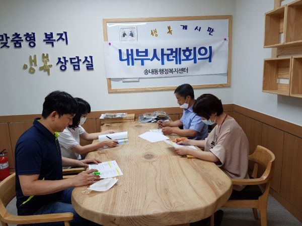 이날 회의에서는 여관에서 거주하며 일용근로로 생계를 유지하던 1인 장년 가구가 코로나19로 인한 일자리 감소로 생활고에 빠진 사례에 대한 긴급 생계비 지원을 포함한 맞춤형 복지서비스 제공에 대해 논의했으며 기존의 사례관리 대상자를 중심으로한 복지서비스 진행 전반에 대한 점검도 병행했다.