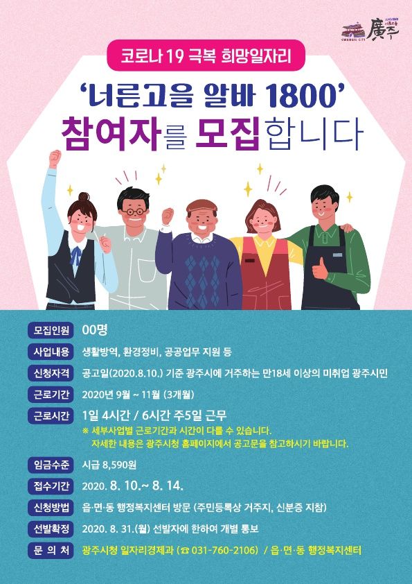 모집 기간은 10일부터 14일까지이며 만 18세 이상의 광주시민이면 누구나 신청이 가능하다.