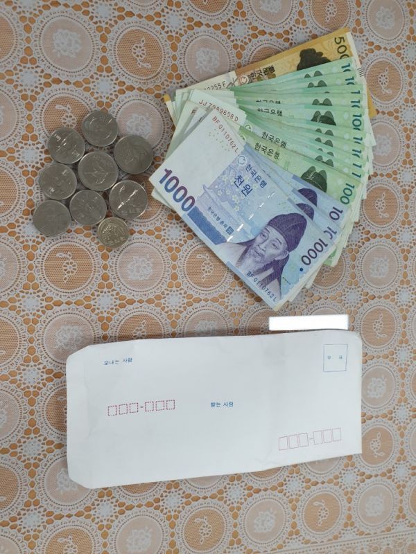 임 할아버지가 건넨 봉투에는 지폐와 동전 등 그동안 모아 온 165,050원이 들어 있었다.