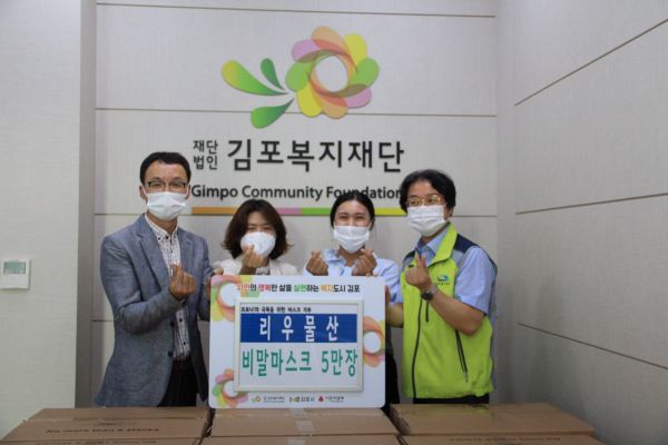 김포시 대곶면에 위치한 ㈜리우물산은 이번에 새롭게 확장된 사업으로 마스크생산라인 설비를 갖추고 처음으로 생산된 마스크를 김포복지재단을 통해 김포시 관내 어려운 이웃들이 코로나19를 잘 극복해 내길 바라는 마음으로 기부했다.