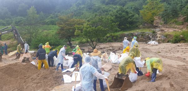 자원봉사 참가자들은 비가 계속 내리는 궂은 날씨에도 죽산면 곳곳에서 산사태정리, 유실하천 톤백잡기, 농가 진흙치우기, 생활도구 정리 작업 등 수해복구에 큰 힘을 쏟았다.