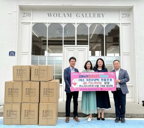 후원 전달식에 ㈜느티나무의사랑 이나경 홍보이사, 서경미 팀장, 김해시복지재단 김영호 경영지원본부장, 류재복 관장이 참석했다고 전했다.