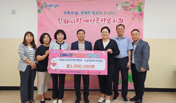 [ 중앙뉴스미디어 ] (재)김해시복지재단 김해시장애인종합복지관은 8월 19일김해시어린이집연합회 국공립분과위원회로부터 장애인 프로그램 지원을 위한 지정기탁금(100만원)을 전달받았다고 밝혔다.