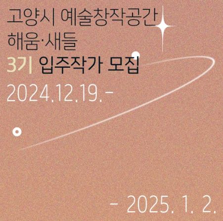 [ 중앙뉴스미디어 ] 고양특례시에서는 2025년도 예술창작공간 ‘해움’과 ‘새들’의 입주작가(3기)를 모집한다.