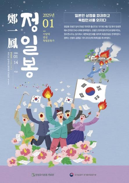 [ 중앙뉴스미디어 ] 안성시와 국가보훈부 경기동부보훈지청은 공동으로 안성3.1독립만세운동에 참여한 독립운동가 정일봉(鄭一鳳) 선생을 ‘2025년 1월 이달의 안성 독립운동가’로 선정했다.