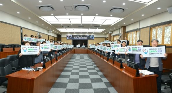 선언식은 거제시장의 선언문 서명을 시작으로, 간부 공무원들이 ‘1회용품 제로화 실천’ 피켓을 들고 구호와 함께 기념촬영을 하며 마무리됐다.