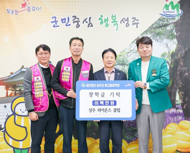 [ 중앙뉴스미디어 ] 지난 2일 성주라이온스클럽(회장 박남주)에서 지역인재를 위한 장학금 2백만원을 (재)성주군별고을장학회에 기탁했다.