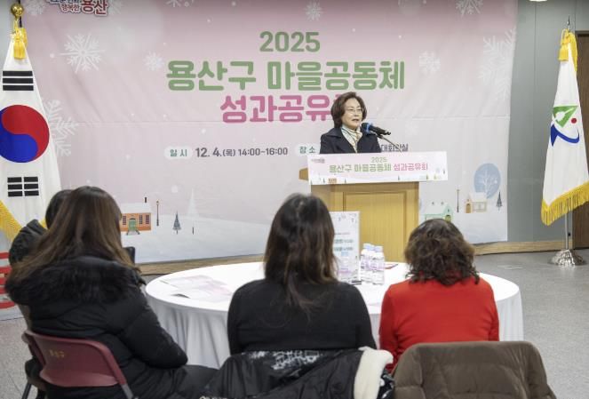 [ 중앙뉴스미디어 ] 서울 용산구가 지난 4일 구청 대회의실에서 ‘2025년 용산구 마을공동체 공모사업 성과공유회’를 열어 참여자 간 응원과 격려의 시간을 가졌다.