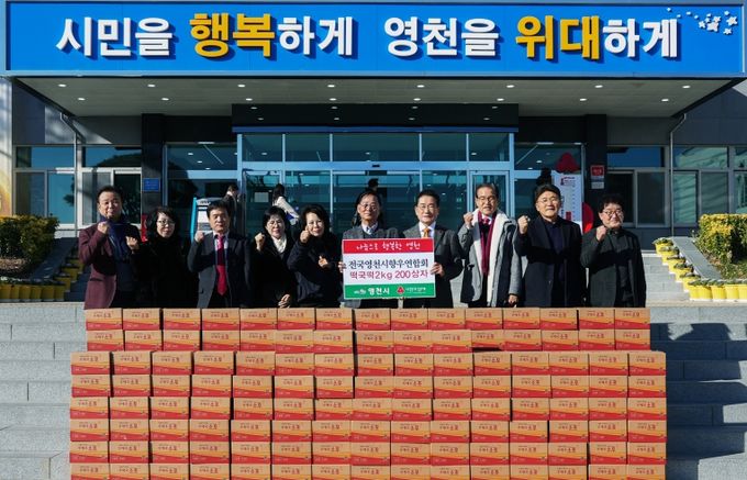 한편, 전국영천시향우연합회는 전국 각지의 영천 향우들이 뜻을 모아 고향 발전과 나눔 실천에 앞장서고 있으며, 지난달 27일에도 샤인머스캣 200박스를 기탁하는 등 매년 다양한 후원과 봉사활동을 통해 지역사회 공헌을 이어가고 있다.