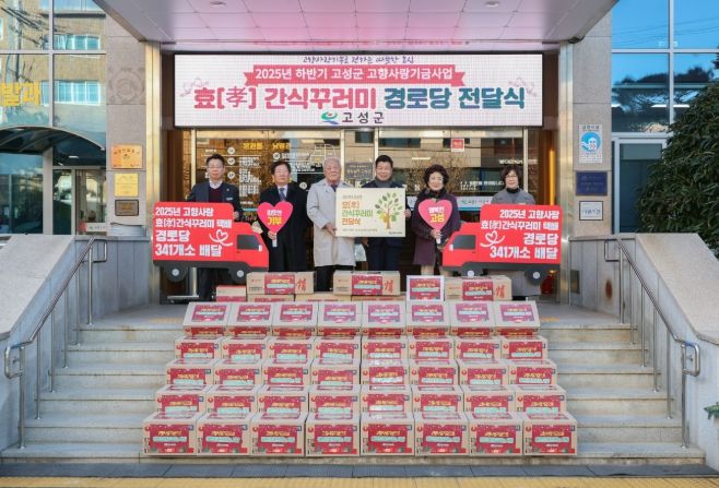 [ 중앙뉴스미디어 ] 고성군은 12월 4일, 고향사랑기금사업의 일환으로 관내 341개 경로당에 10만 원 상당의 ‘효(孝) 간식꾸러미’를 전달했다고 밝혔다.