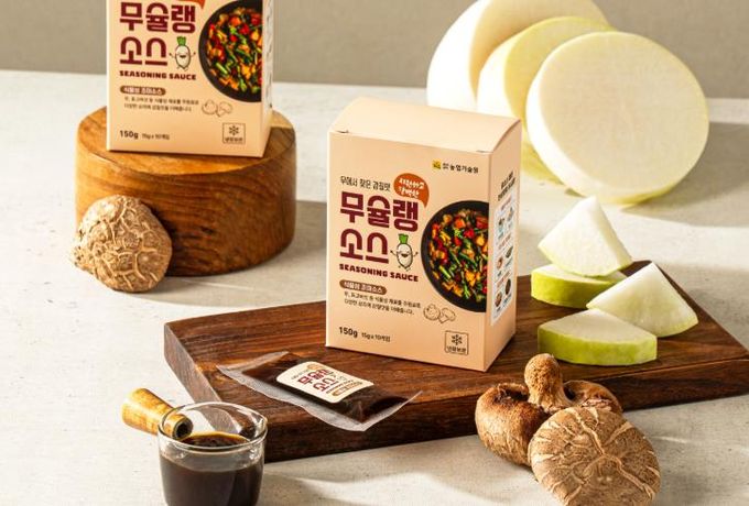 무 조미소스는 굴 소스를 대체할 다용도 식물성 조미소스로, 무 특유의 맛 성분을 농축한 ‘무 농축액’을 핵심 소재로 사용했다.