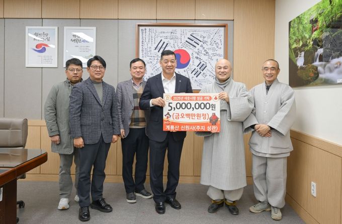 [ 중앙뉴스미디어 ] 공주시는 대한불교조계종 신원사가 지난 16일 시청 상황실에서 이웃돕기 성금 500만 원을 전달했다고 밝혔다.