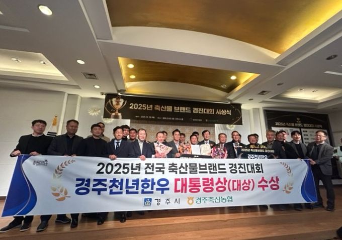 [ 중앙뉴스미디어 ] 경주지역 대표 한우 브랜드인 ‘경주천년한우’가 농림축산식품부가 주최하고 농협경제지주가 주관한 2025년 축산물 브랜드 경진대회에서 최고의 영예인 ‘대통령상(대상)’을 수상했다.