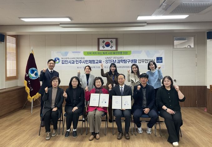 이말숙 교육장은 “이번 협약이 과학‧기술 분야 우수 연구기관인 UNIST와 협업하여 우리 학생들이 미래역량을 키울 수 있는 교육 프로그램 제공으로 풍요로운 진로 체험 기반 민주시민 활동을 하는 의미 있는 출발점이 되길 바란다”며, “앞으로도 미래역량을 강화할 수 있는 양질의 교육을 제공하여 부산의 학생들이 미래사회를 이끌어갈 인재로 성장할 수 있도록 다양한 정책을 추진하겠다”고 말했다.