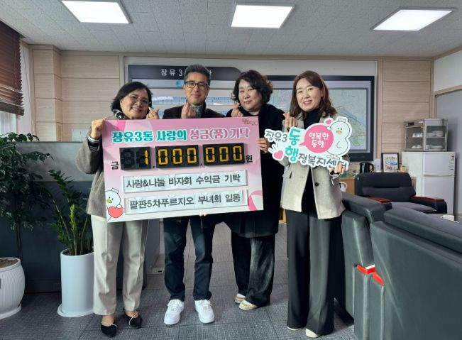 이번 성금은 지난 2025년 10월 30일 팔판마을5단지 푸르지오아파트에서 열린 ‘사랑&나눔 바자회’를 통해 마련됐다. 바자회는 의류, 생활잡화 등 중고물품 판매와 함께 먹거리 장터를 운영해 입주민들의 큰 호응을 얻었다.
