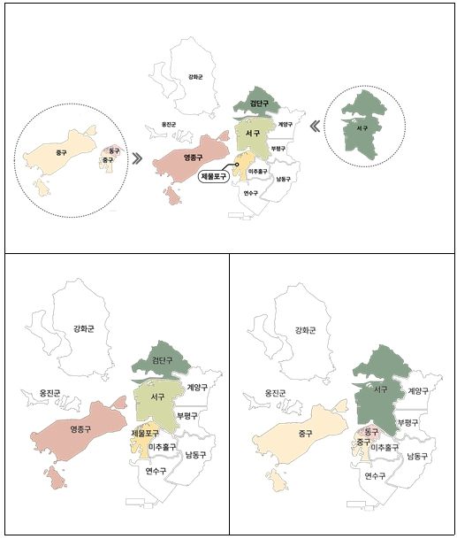 인천형 행정체제 개편은 현재의 중구와 동구를 ‘제물포구’와 ‘영종구’로 통합·조정하고, 서구에서 ‘검단구’를 분리하는 것으로, 인천의 행정체제를 기존 2군·8구에서 2군·9구로 확대하는 사업이다.