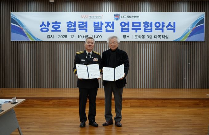 [ 중앙뉴스미디어 ] (재)대구광역시동구문화재단(이사장 윤석준)과 대구동부소방서가 지난 12월 19일, 지역 문화시설의 안전관리 강화와 재난 대응 협력 구축을 위한 업무협약(MOU)을 체결했다.