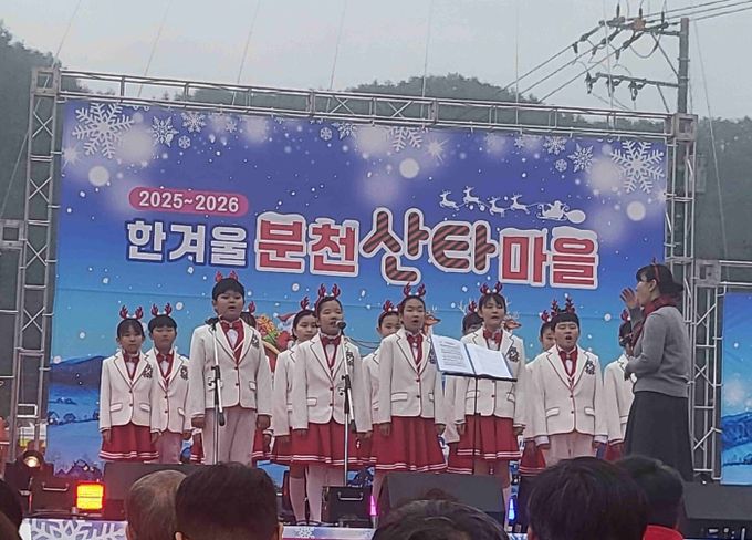 [ 중앙뉴스미디어 ] 봉화군 소천면 분천산타마을에서 지난 20일(토) 개최된 ‘2025 한겨울 분천산타마을 개장식’ 이 지역주민과 관광객들의 열띤 호응 속에 성황리에 열렸다. 이번 개장 축하공연에는 봉화교육지원청이 운영하는 봉꽃송이 청소년 합창단이 참여하여 한겨울 추위를 녹이는 따뜻한 무대를 선사했다.