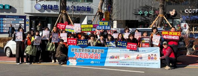 군은 지난 22일 거창군여성단체협의회, 여성의용소방대와 (사)시장번영회, 군 관계 공무원 등 30여 명과 함께 거창시장 인근 및 대동리 회전교차로에서 불법 방문판매 근절 및 피해 예방 캠페인을 실시했다.
