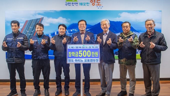 [ 중앙뉴스미디어 ] 영도 마리노 오토캠핑장(기간제근로자 일동)은 지난 12월 19일 영도구청을 방문하여 우수한 지역인재 양성을 위해 (재)행복영도장학회에 500만 원을 기탁했다.