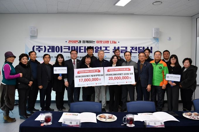 [ 중앙뉴스미디어 ] 세종특별자치시 전의면지역사회보장협의체가 22일 전의면 행복누림터(복합커뮤니티센터)에서 ㈜레이크머티리얼즈로부터 성금 3,700만 원을 전달받았다.