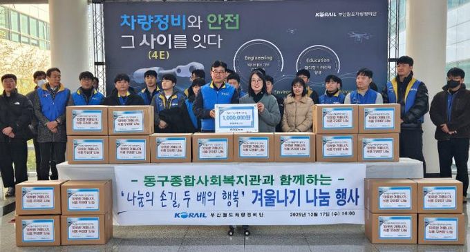 동구종합사회복지관 김창근 관장은 "늘 많은 동구 지역 주민분들에게 따뜻한 마음을 전해주시는 부산철도차량정비단에 감사드린다"고 인사했다.