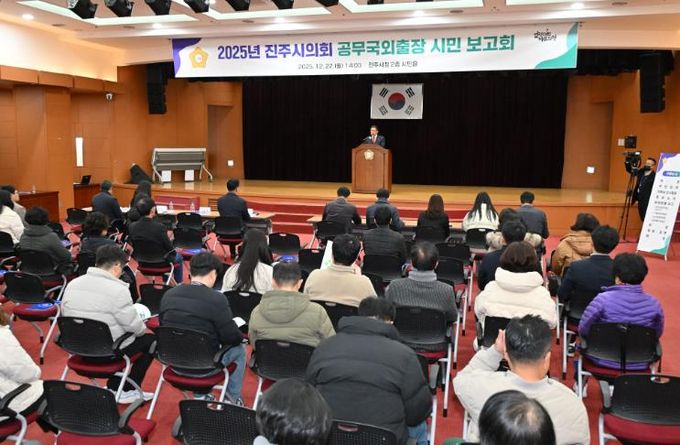 [ 중앙뉴스미디어 ] 진주시의회는 22일 시민과 시 관계부서 공무원, 출연·유관기관 관계자 등이 참석한 가운데 ‘2025년 진주시의회 공무국외출장 시민보고회’를 시청 시민홀에서 열고, 해외 연수 성과의 정책 적용 가능성을 시민과 함께 살폈다.