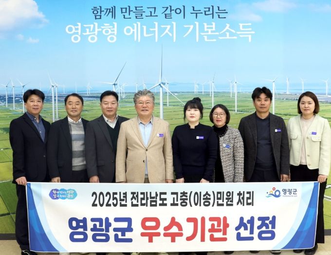 [ 중앙뉴스미디어 ] 영광군은 전라남도가 주관한 ‘2025년도 전라남도 이송 고충 민원처리 실태 점검’에서 우수기관으로 선정됐다.