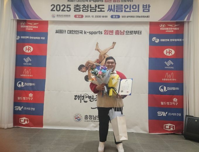 [ 중앙뉴스미디어 ] 지난 23일 충남 당진시 A웨딩홀에서 열린 '2025년 충남 씨름인의 밤' 행사에서 청양초등학교 김민규(38) 씨름 감독이 충남교육감 표창을 수상하며 큰 주목을 받았다.