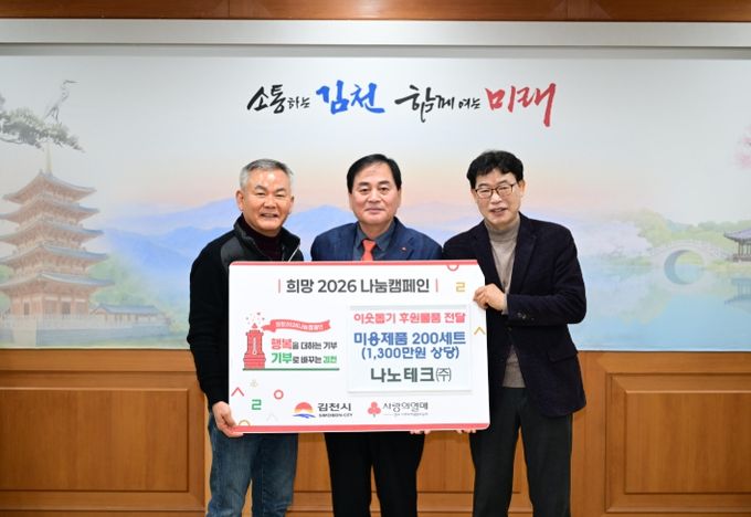 [ 중앙뉴스미디어 ] 김천시는 지난 23일, 나노테크㈜(대표 김정헌)으로부터 어려운 이웃을 위한 미용 제품 200상자(1,300만 원 상당)를 전달받았다고 밝혔다.