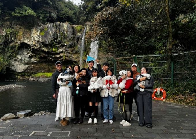 [ 중앙뉴스미디어 ] 서귀포시는 12월 23일 반려동물 동반 관광상품을 운영하는 H여행사 일행 10명과 반려동물 6마리가 천지연폭포를 방문했다고 밝혔다.