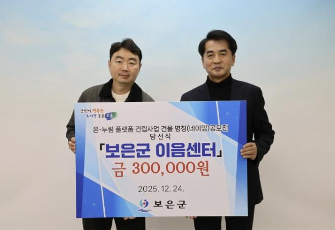[ 중앙뉴스미디어 ] 충북 보은군은 생애주기별 복지서비스 제공을 위한 ‘온-누림 플랫폼(가칭)’의 공식 명칭으로 ‘보은군 이음센터(응모자 박준표)’를 최종 선정하고 24일 시상식을 개최했다.