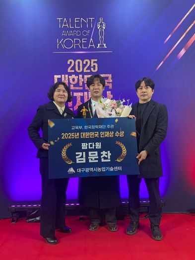 이러한 김문찬 대표의 농업에 대한 열정과 성장 가능성을 높이 평가해 농업기술센터가 대한민국 인재상 후보자로 추천했으며, 지역 심사와 중앙 발표 심사를 거쳐 최종 수상자로 선정됐다.