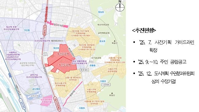[ 중앙뉴스미디어 ] 서울시는 2025년 12월 24일 '제14차 도시계획위원회 신속통합기획 정비사업 등 수권분과위원회'를 개최하여 ‘독산동 1036일대(독산1구역)’과 ‘독산동 1072 일대(독산2구역)’ 주택정비형 재개발사업 정비구역 지정 및 정비계획 결정(안)을 '수정가결' 했다고 밝혔다.